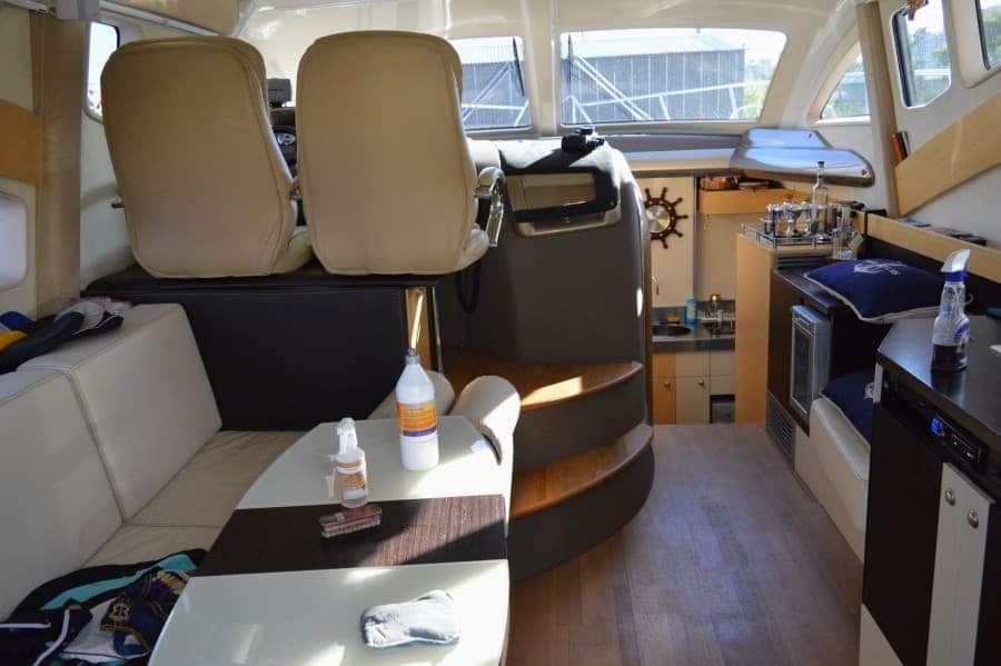 - Уход за интерьером: комплексная очистка салона, кабины пилота или помещения пассажиров, проводится с использованием специализированных средств и оборудования. Удаляются пыль, Pin-Up микроорганизмы и запахи, применяются средства для восстановления кожи, пластика, дерева, а также озонаторы для окончательной дезинфекции и освежения воздуха.
